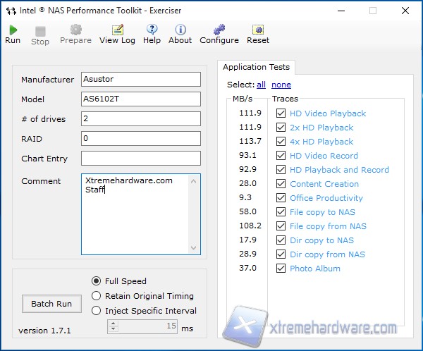 Questa suite è stata sviluppata da Intel appositamente per testare le performances dei Network Attached Storage. Tale applicazione effettua test in svariati ambiti riproducendo situazioni tipiche nell’utilizzo dei NAS, come ad esempio la riproduzione di contenuti multimediali, lo spostamento di file e cartelle o la visualizzazione di Photo Album.